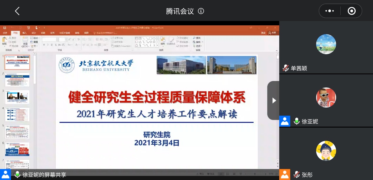 林贵平书记传达了学校2021年度工作要点以及曹书记在工作要点会上的讲话,并对相关文件和讲话进行了深度解读。2021年学校工作的总体要求是坚持以习近平新时代中国特色社会主义思想为指导,深入贯彻党的十九大和十九届二中、三中、四中、五中全会精神,深入学习贯彻习近平总书记关于高等教育、科技创新的重要论述,立足新发展阶段,贯彻新发展理念,构建新发展格局,以高质量发展为主线,坚持立德树人根本任务,以党的政治建设为统领全面加强党的各项建设;完善一流学科体系;按照“厚植情怀、强化基础、突出实践、科教融通”的方针,打造“强情怀、强基础、强实践、强融通”的人才培养“四强”模式;加大人才引育力度,促进教师分类卓越;构建体系化创新能力,支撑国家科技自立自强;加速“双核”发展,提升治理能力;加强顶层设计、系统谋划、协同推进,确保“十四五”开好局、起好步,以优异成绩庆祝建党100周年。