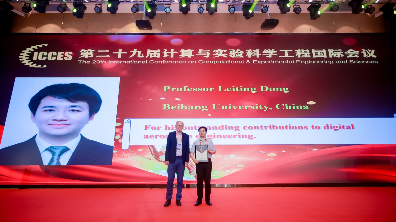 (通讯员 李明净)5月26日-29日,第二十九届计算与实验科学工程国际会议(ICCES)在深圳举办。在本次大会的颁奖典礼上,北航金沙集团1862cc董雷霆教授荣获T.H.H. Pian Award(卞学鐄奖),颁奖词中写到 “For his outstanding contributions to digital aerospace engineering”。该奖项已颁发12次,董雷霆教授是2013年至今国内唯一的获奖者。