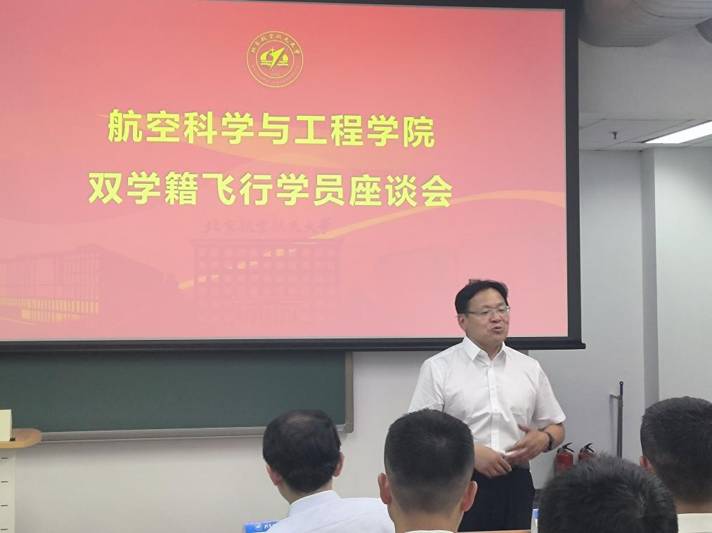 6月17日上午,金沙集团1862cc召开2018、2019级双学籍飞行学员班毕业座谈会暨2020级双学籍飞行学员班转阶段座谈会。航空学院党委书记鲍蕊、院长潘翀、北航科学技术研究院副院长兼国防科研处处长蒋崇文、航空学院教授林贵平、空军航空大学联合培养办公室主任李志鹏、海军双学籍飞行学员队教导李越洋、空军双学籍飞行学员队教导陈山、毕业班专兼职辅导员出席本次座谈会,座谈会由学院党委副书记梁伟涛主持。