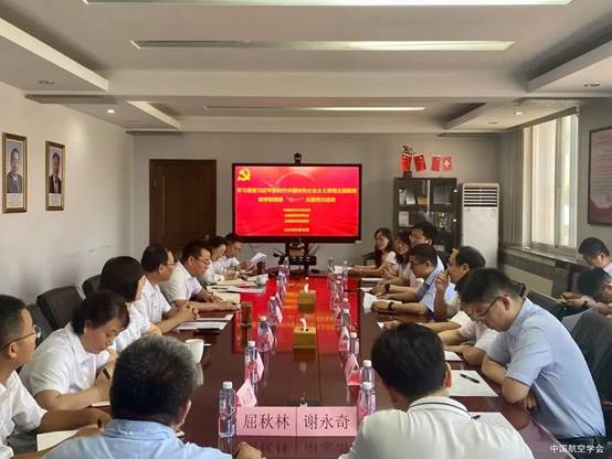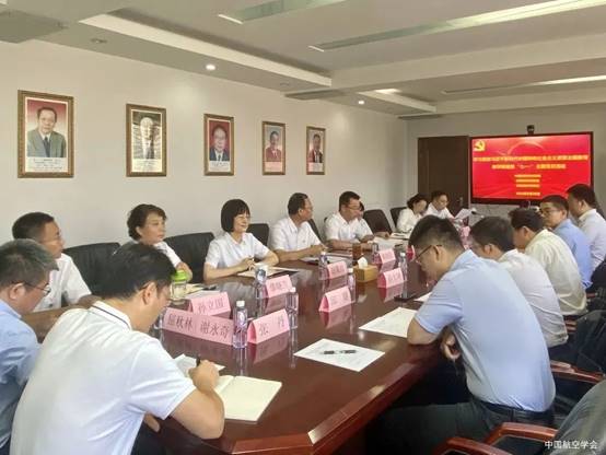 6月30日,中国航空学会党支部与北航航空学院党委、动力学院党委联合开展学习贯彻习近平新时代中国特色社会主义思想主题教育联学联建暨"七.一"主题党日活动,学会党委副书记、副理事长兼秘书长姚俊臣,党委委员、执行秘书长周竞赛,副秘书长赵霜红。北航航空学院院长潘翀,副院长董雷霆、邵丽华;北航动力学院党委书记董卓宁,副院长孙大坤、邱璐等领导和来自学会党支部,北航航空学院、动力学院的20余名党员同志参加活动。