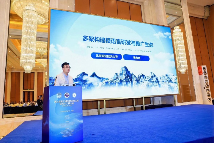 大会专家论坛,分别由中国商飞北研中心需求工程部部长唐剑、中国系统工程学会副秘书长郑新华主持。航空工业机载共性中心集团首席技术专家田莉蓉、航天五院副总师王为、中国核动力研究设计院数字化项目副总师李松蔚、中国航发四川燃气涡轮研究院主任祁宏斌、航天十二院首席信息官侯俊杰、中国航空综合技术研究所副总师宋涛、航天八院副总师阮开智等来自航空、航天、航发和核工业等十余位专家,分别做了大会报告,分享了在基于模型的系统工程(MBSE)在中国深入发展的大趋势下,关于基于模型的系统工程和数字工程方面的技术思考和应用实践。其中,金沙集团官网鲁金直副教授作《多架构建模语言研发与推广生态》为名的大会主题报告。报告中介绍了多架构建模语言KARMA的发展历程及生态推广与应用情况。相关专家报告引起了与会者高度关注和热烈讨论。