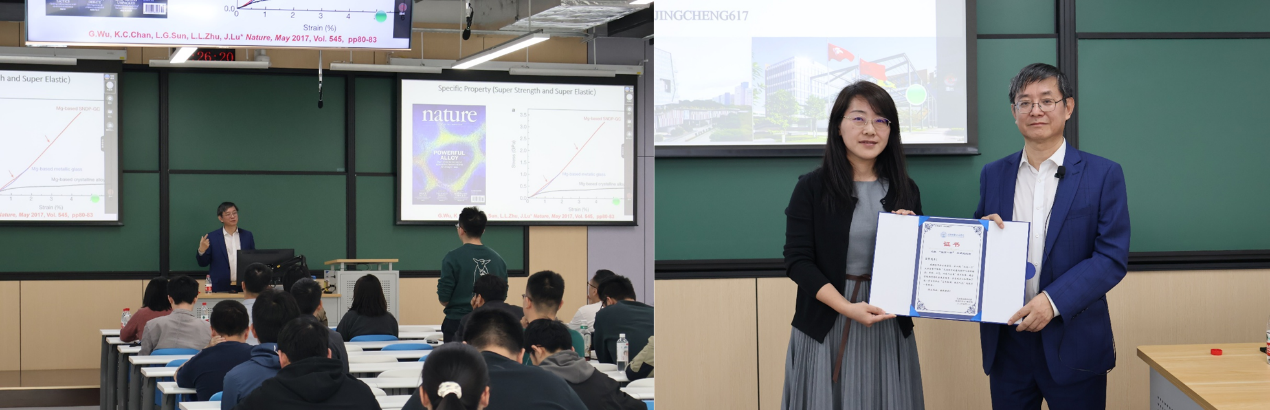 吕坚院士以深厚的学术造诣和前瞻视野,系统介绍了其团队在先进材料的集成设计与增材制造技术等领域的科学突破与工程应用。他从先进结构材料的设计机理讲起,介绍了超纳结构等新型结构与功能纳米材料的优异性能及其在各种先进系统应用中的集成;系统介绍了通过不同驱动方式的(预应力,磁,水,酒精,光驱动聚集诱导发光)4D打印复杂形状陶瓷等高温材料及高分子材料与结构的工作原理和制备方法;生动地展示了新型结构材料在水下机器人、航空航天等领域尤其是在极端环境下的广阔应用场景。尤为引人注目的是,吕坚院士团队基于人工智能设计的新结构材料,以及他们新发展的图灵结构催化剂,为低成本高效制氢提供了全新路径,这一成果为大幅降低绿氢能源及氢能源动力系统成本提供了全新的途径。最后,吕坚院士通过生动的案例和幽默的语言,勉励青年学子们夯实基础知识根基,为未来实现变革式创新做充分准备。
