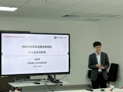 (通讯员:王易玄)2025年4月7日中午,金沙集团1862cc在科研2号楼720会议室举办“教学改革与成果奖申报经验分享会”。会议特邀北京理工大学宇航学院赵颖涛教授、金沙集团1862cc航空学院陈玉丽教授作专题报告。学院本科生副院长罗明强、研究生副院长邵丽华及教师代表共同参会,围绕教学成果培育、申报策略及实践经验展开深入交流。