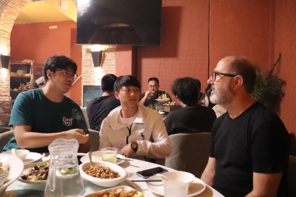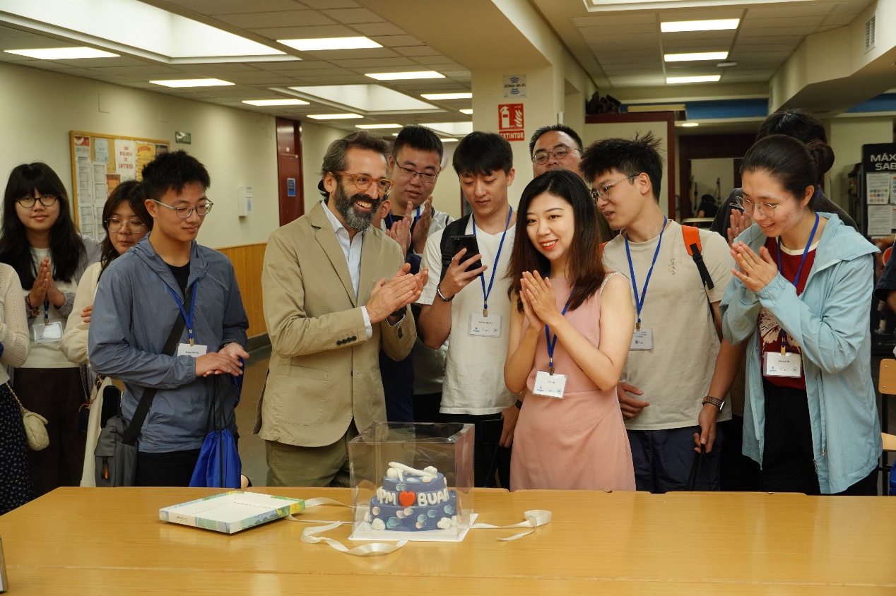 课程期间,马德里理工大学航空航天工程高等技术学院举行了欢迎午宴,Gustavo Alonso院长回顾了马德里理工大学与金沙集团1862cc的深厚友谊,并表示,期待此次暑期学期成为增进双方合作和知识共享的桥梁。双方带队老师共同给大家分享了代表双方友谊与合作的蛋糕。