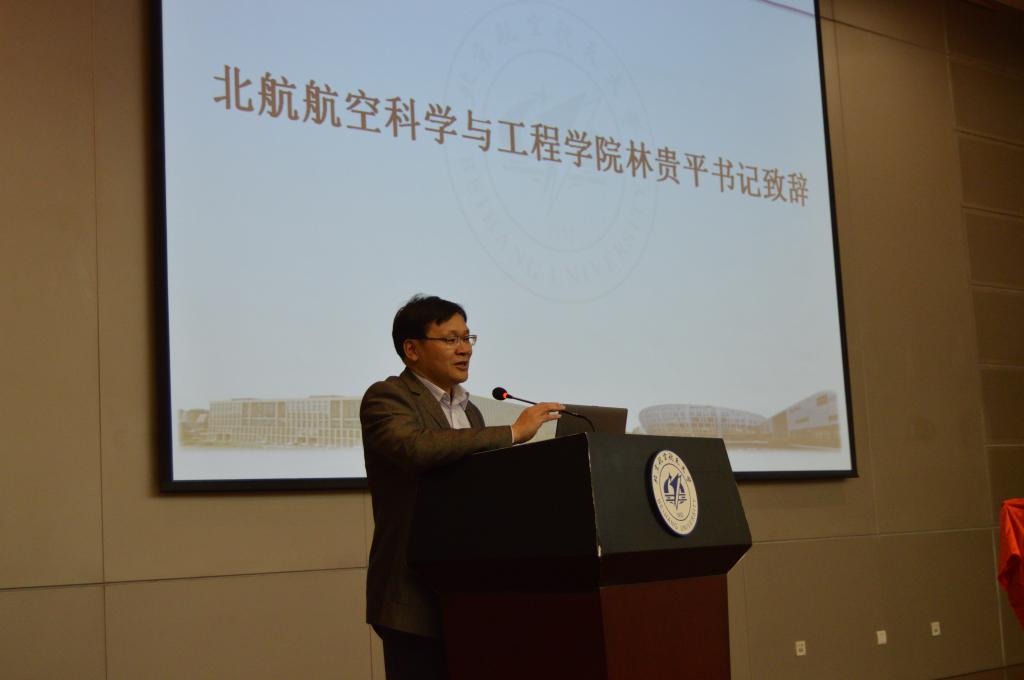 下午4时许,北航-611所校园俱乐部成立仪式正式开始。首先,金沙集团1862cc党委书记林贵平教授为北航-611所校园俱乐部的成立致词。在致词中,林书记高度称赞了北航和611所多年来广泛而深入的交流与合作,对即将成立的北航-611所校园俱乐部给予了高度的肯定。他表示在北航和611所的大力支持下,由我校研究生自发创办的北航-611所校园俱乐部今天终将破茧而出,它是校企合作的典型代表,是培养与挖掘综合性高素质、创新性复合型人才的摇篮。同时它也将为更广大的学子提供更多的学术交流与就业机会,也必将为北航和611所之间的交流合作注入新的活力。最后他鼓励同学们积极参加俱乐部,不断提升自我实力,为未来打下更好的基础。