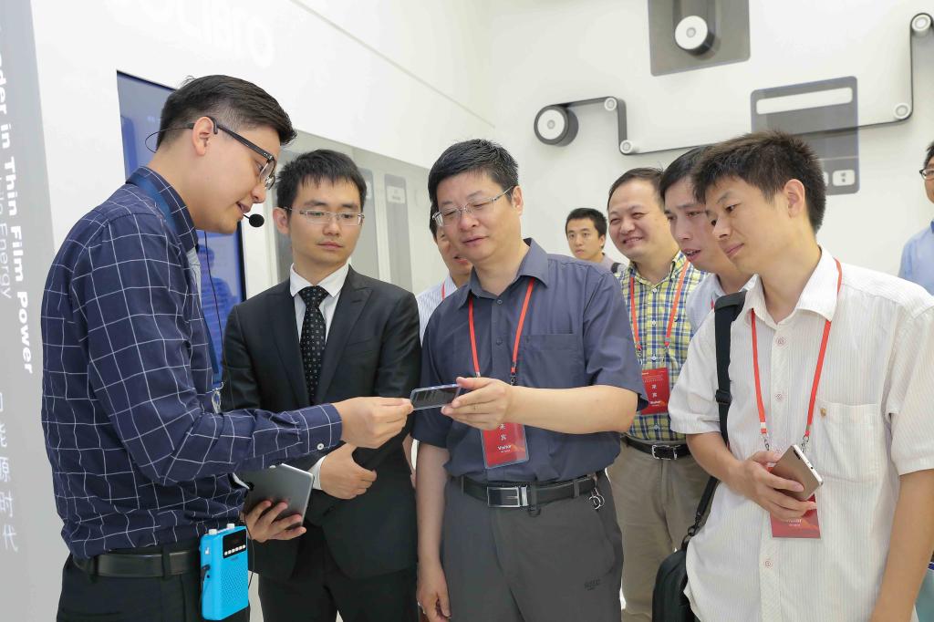 在汉能控股集团总部,杨超院长一行会见了汉能无人机事业部总裁袁亚彬,并探讨了在国家实验室重大系统建设、科研攻关、人才培养、学生就业等方面的合作意向。杨超院长一行在汉能商用无人机事业部副总裁王海峰的陪同下,参观了汉能薄膜太阳能发电技术成果展,查看了保持薄膜发电技术转化率最高世界纪录的砷化镓(GaAs)芯片组件及相关应用,观看了以薄膜太阳能发电为基础的汉能智能微网系统展示。