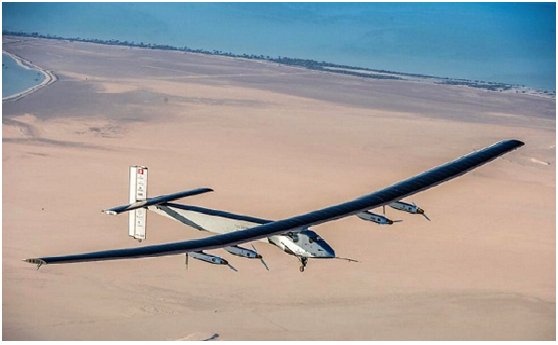 “阳光动力2号”太阳能飞机是目前世界上最大的太阳能飞机,其翼展有72米,与波音747相当,但重量极轻,只有2300公斤,大约与家用轿车相同。“阳光动力2号”的飞行所需能量完全由太阳能电池提供,是一架不必耗费一滴燃油便可实现昼夜连续飞行的太阳能飞机。
