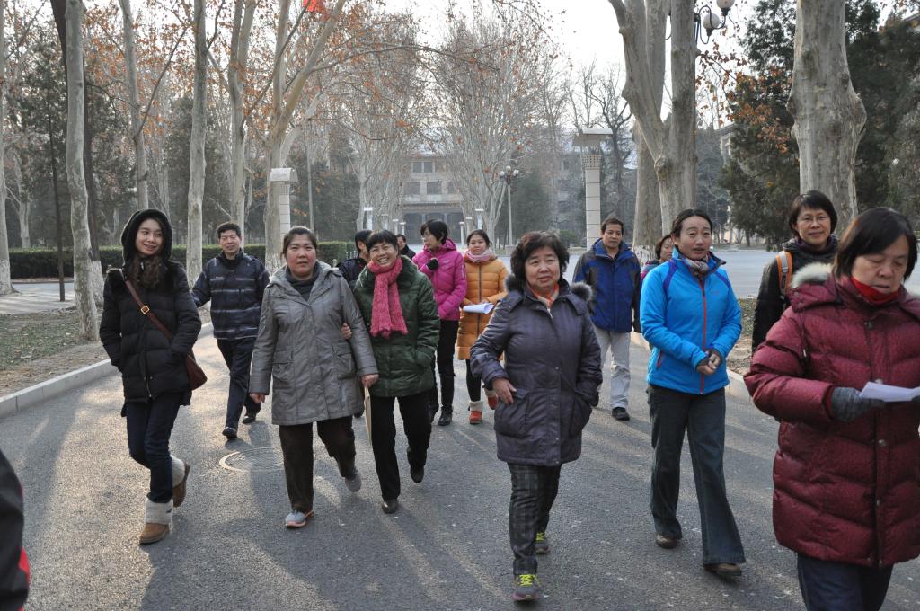 12月26日上午,航空学院工会组织开展了2014年冬季“大步走”活动,活动旨在督促大家增强锻炼意识,平时多走路、多运动。学院院长杨超、党委书记林贵平、副院长王延奎、副书记高静、工会主席王黎静、党政办主任杜奔新、流体所所长王晋军、学院院长助理蒋崇文、李道春等,全院50余位老师参加了活动。活动从上午10:30开始,大步走的路线主要是围绕教学区步行。