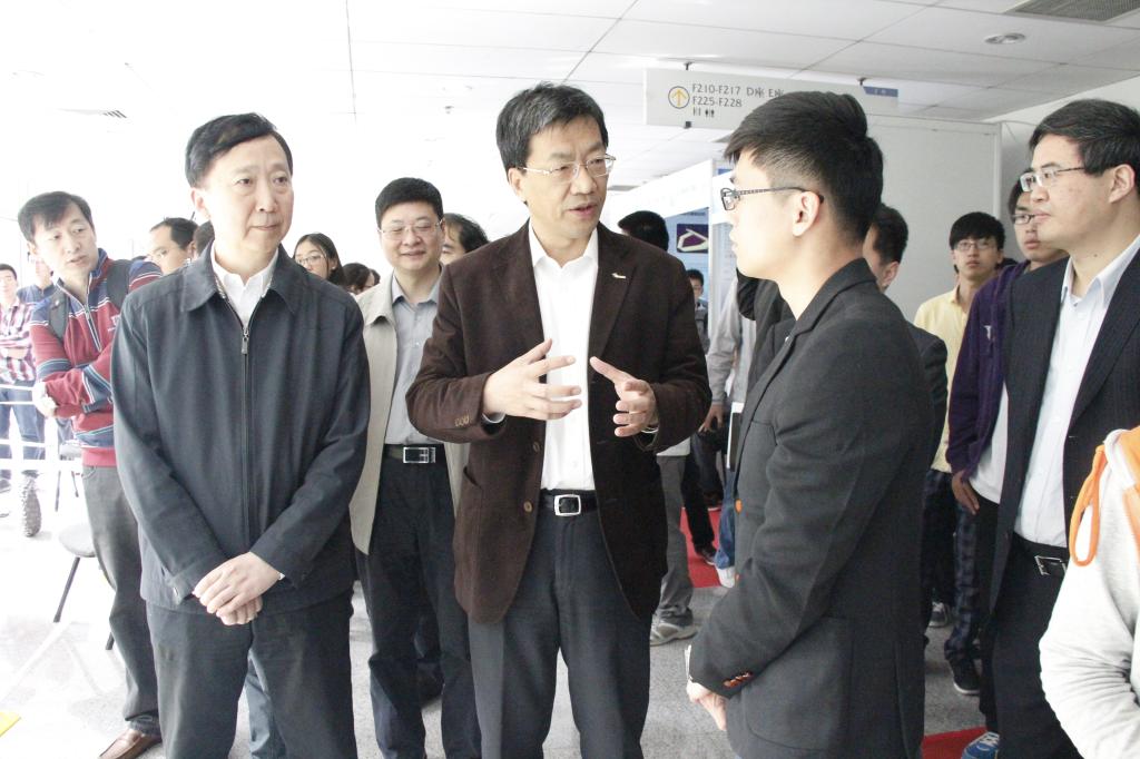 来自航空学院的四十余项优秀的作品,或构思奇妙,或扎实稳定,都吸引了往来的观众驻足围观,而竞赛的作者们也满怀热情,耐心细致地向观众们解说自己最骄傲的作品。上午9时,金沙集团1862cc校长怀进鹏院士、党委书记胡凌云教授、副校长张军院士等学校领导以及金沙集团1862cc院长杨超教授等视察了航空学院同学们的作品展览,并听取了航空学院2013级学生辅导员章异赢的详细解说。怀进鹏校长高度肯定了同学们的创造能力,并鼓励同学们开拓眼界、勇于创新,“要做别人没有做过的东西”。