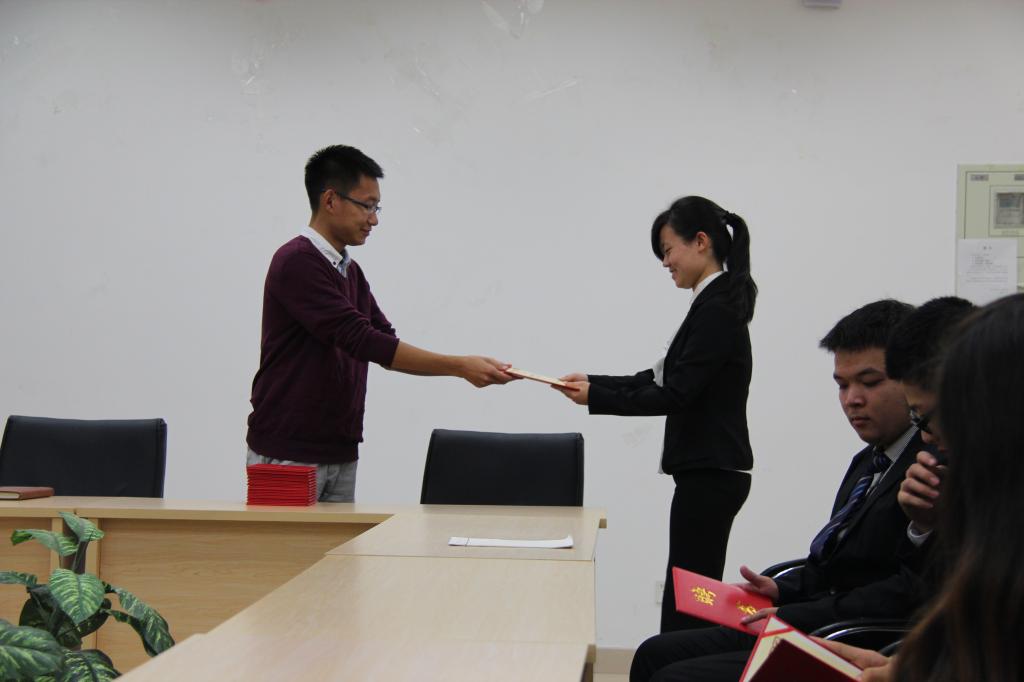 会议由学生理事会常务主席周烨主持并宣读理事会简介。常务主席赵梦如以及各部部长分别介绍了主席团和各部的人员组成及主要工作。随后,靳海川辅导员对理事会的工作与发展进行了详尽的指导与规划,对学生理事会的开局工作提出了宝贵的建议,并为学生理事会成员颁发了聘书。至此,本次成立大会取得了圆满成功。