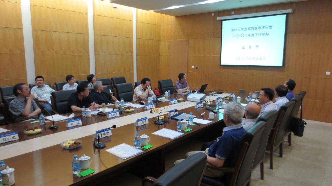 流体力学教育部重点实验室第三届学术委员会第二次会议于2012年6月15日在金沙集团1862cc会议中心第三会议室举行。实验室学术委员会、北航科研院和航空学院领导、实验室研究人员等共19人出席了会议。在学术委员会主任李家春院士主持下,委员们听取了实验室主任王晋军教授的《2010-2011年度工作报告》和刘沛清教授《大型低速低湍流度低噪声风洞立项工作的进展报告》。