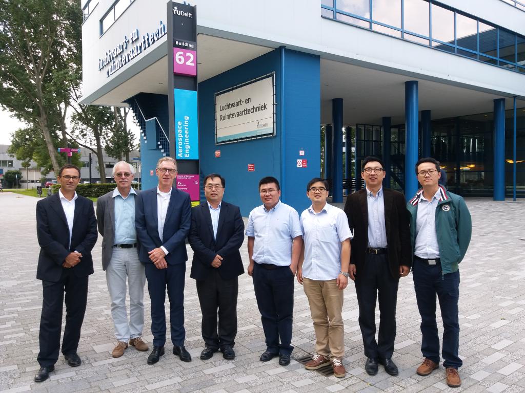 代表团成员与代尔夫特理工大学航宇学院院长Luijten教授、流体力学系主任Scarano教授、Eitelburg教授合影