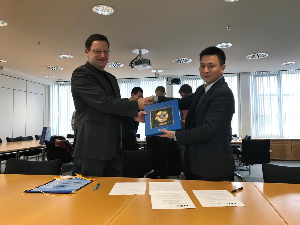 代表团首先访问了亚琛工业大学,校长Schmachtenberg教授热情迎接了代表团的来访,并介绍了亚琛工业大学的基本情况,指出中国科技的高速发展促进了经济的进一步腾飞,并表达了和北航合作的强烈意愿。文东升院长介绍了北航和航空学院的基本情况和国际化发展策略,指出国际化合作项目将成为未来科研工作的重要组成部分。双方就学生交换和博/硕士双学位展开了细致讨论,就尽快开展双硕士学位培养计划达成共识。随后,Moormann教授、Jeschke教授、Klaas教授和Schröder教授分别介绍了亚琛工业大学在飞行力学、涡轮机械、空气动力学和轻量化设计等方面的相关工作。双方展开了热烈讨论,重点探讨了在垂直起降飞行器等领域可能的科研合作。Stumpf教授和Moormann教授接受了代表团的邀请,计划明年来北航参加国际研究生航空航天暑期学校和国际航空科学青年学者学术会议。
