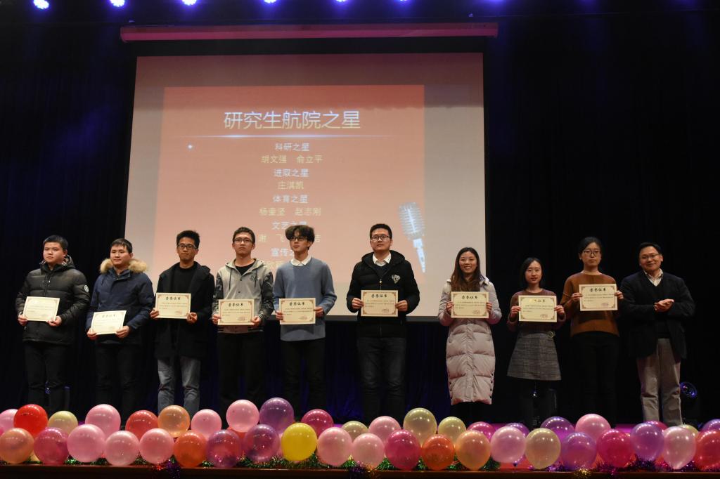 晚会第一章由《航空学院砥砺奋进五年视频展》拉开序幕,回首过去的五年,航空学院在党的领导下坚持教育为主,勇攀科研高峰,在学生教育和科学研究方面取得了喜人的成就。这五年,航院人不忘初心、牢记使命,书写了航空学院发展的新篇章!晚会第二章为航空学院年终表彰大会,2017年航空学院在市级、国家级学生党团建设、科研科创、社会实践等方面取得优异的成绩,催人奋进。晚会现场共颁发了七个奖项,分别为:航空学院“优秀党支部”、“优秀班集体”、“研究生文明工作室”、“最佳学生团队”、“优秀双学籍飞行学员”、“研究生航院之星”和“本科年度人物奖”。
