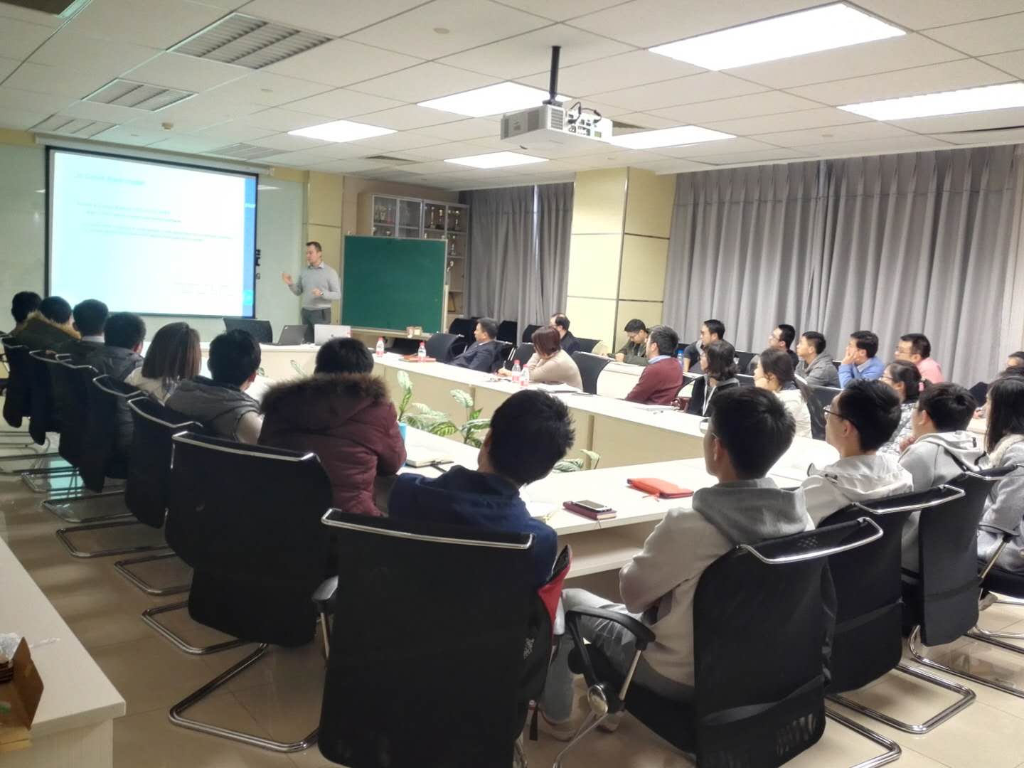 3月15日下午,金沙集团1862cc空天多尺度力学与热力学学科创新引智基地系列报告会在新主楼C708会议室举行。报告会邀请到了法国艾克斯马赛大学的David Brutin教授,作了题为Droplet Wetting and Evaporation:From Pure to Complex Fluids的报告。会议由航空学院院长文东升教授主持,金沙集团官网常士楠教授、张俊教授、卜雪琴副教授、谢永奇老师等以及研究生代表共计50余人参加了会议。