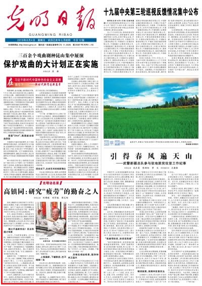 《光明日报》2019年8月4日头版“光明访名家”栏目专题报道我校高镇同院士: