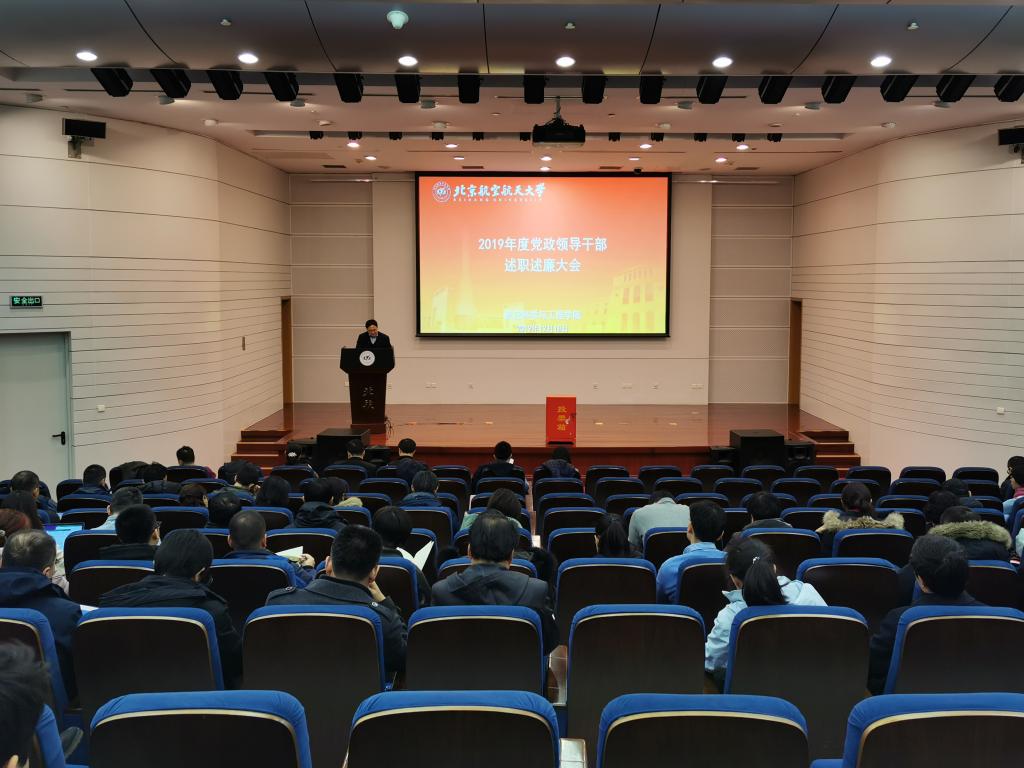 (通讯员 孙振佳)2019年12月18日上午9:00,航空学院2019年度党政领导干部述职述廉大会在新主楼第二报告厅召开,学院全体教职工参加,会议由党委书记林贵平主持。