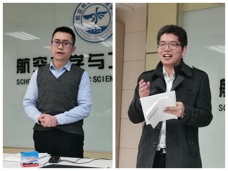 航空学院后备优秀青年教师代表罗明强老师以自己参加比赛的经历指出教学导师对青年教师的帮助作用是巨大的,正是有各位老师的帮助才使自己能够获得青教赛的一等奖。新进教师代表李云龙表示:我们有幸有了一位属于自己的好师傅,给我们指点迷津。每一位师傅都有着丰富的教学经验,高超的教学能力,优秀的教学品质。我们青年教师会虚心向师傅学习,主动向师傅学习,向师傅一样,树立优秀的师德师风,落实立德树人根本任务。