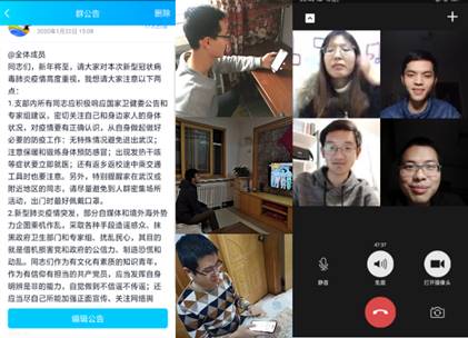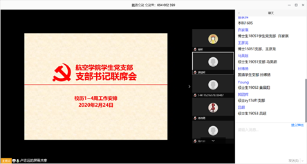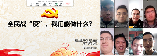 部分学生党支部建立临时学习小组,对中央精神、疫情形势、防疫知识等内容进行讨论学习,以在线视频的形式交流分享战“疫”心得。