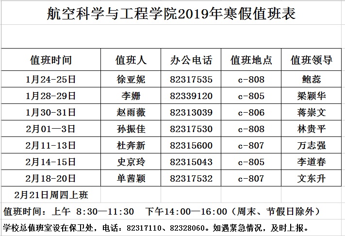 金沙集团1862cc2019年寒假值班表