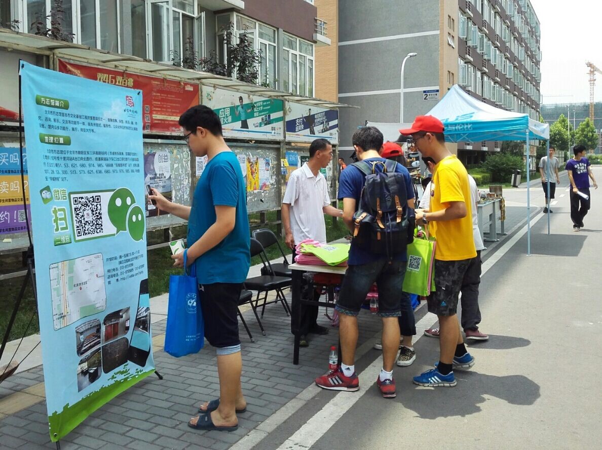 级党支部的学生党员共同向往来的同学们散发传单、礼品,并引导同学们关注方志馆的公众号。也许是见惯了其他类型的外场活动,同学们对这种介绍博物馆、介绍北京风土人情的外场活动表现出了浓厚的兴趣,堆积如山的宣传品都满足不了纷至沓来的同学们,活动进展之快让方志馆的工作人员都感到喜出望外。在持续一个多小时后,外场活动于午饭后顺利结束,相信本次活动能在同学们之中起到很好的宣传效果。