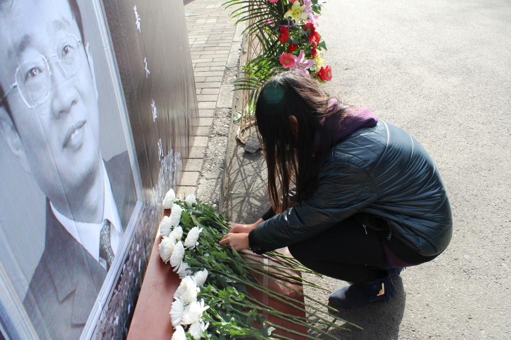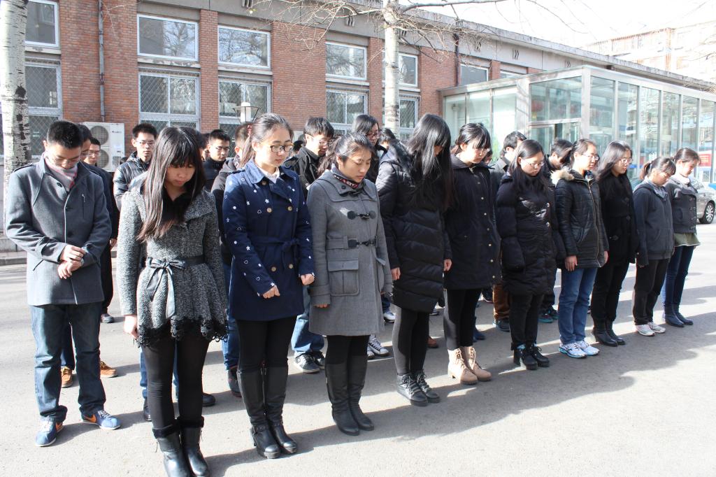 北航航空学院1205党支部近50名党员、预党和入党积极分子们参加了此次悼念活动。中午12点30分,寒风瑟瑟、气氛凝重,同学们在主持人李宏睿同志的指引下开始了悼念仪式。他先介绍了罗阳同志的生平和其光辉事迹,随后全体默哀三分钟。在沉痛的默哀后,每一位参与活动的党员们都在罗阳校友的遗像前依次鞠躬献花,表达对他的尊敬与哀思。最后,党支部书记罗天航同志发言,号召党支部成员努力进取,学习罗阳前辈航空报国的优秀品质,服务社会、报效祖国,在场同志都深受鼓舞。