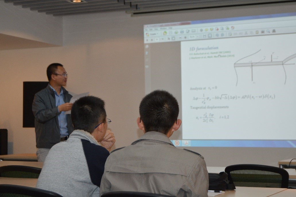 报告开始之初,主持人介绍了关于Julisu Kaplunov教授的相关背景,使同学们对这位教授有了一个相关的认识。接着Julisu Kaplunov教授带来了一场精彩的报告,获得了同学的热烈的掌声,同时同学们也必定从中受益匪浅。
