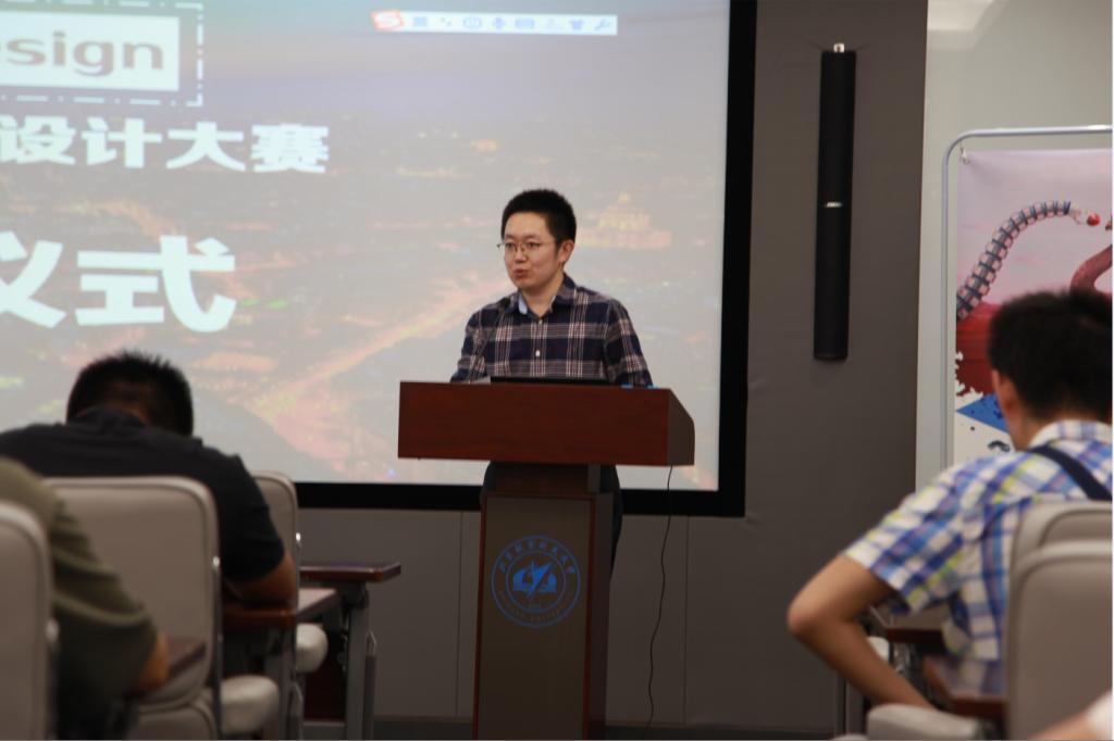 梁书记致辞完毕后,中国航空工业文化中心经营管理部部长刘鑫上台致辞,他表示新中国航空工业取得的辉煌成就,得益于中国航空工业坚持创新驱动的发展战略。本次大赛旨为在校师生搭建一个专业化的学习交流平台,普及世界先进航空设计理念和软件工具,激发学生创意创业灵感,培养并挖掘具有创新潜质的航空设计师和3D设计人才。希望通过此次大赛,能够为高校的创新型人才培养注入技术和文化的新鲜力量,搭建校企合作培养和发现优秀人才的平台,为未来中国和世界航空业发展培育和输送更加优秀的人才。
