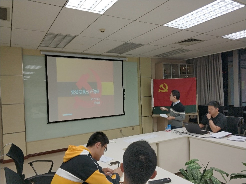 为考察党员发展对象的政治素质和党性修养,帮助他们端正入党态度、提高政治觉悟,金沙集团1862cc硕士17051党支部于2018年10月31日晚7点在新主楼C708举行党员发展对象答辩会。会议由金沙集团1862cc硕士17051党支部书记陈锦涌同志主持。参加此次答辩会的有辅导员张志涛、学生党支部全体成员以及参加此次答辩的积极分子。