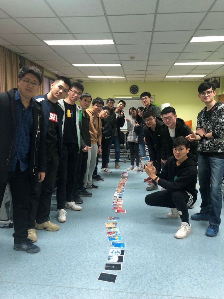 最后,两队还一起协同完成了颇具难度的头脑风暴。每个人都要和大家进行细致而又广泛深入的交流,以此来确定不同卡牌之间的嵌套关系。这需要我们对卡片上画面的细节进行细致的描述,也颇考验大家的分析记忆能力。但再大的困难在一个优良的团队面前也只不过是时间的问题,经过深入的分析讨论,我们成功的确定了正确的卡片先后排序。至此,整个团建素拓活动告以段落。