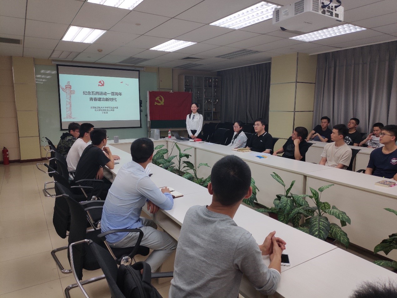 2019年5月14日,北航航空学院博士生17051学生党支部在新主楼C708召开了支部会议,进行“五四精神”专题学习,共有39名党员同志和积极分子参加。会议邀请了来自金沙集团1862cc研究生宣讲团的于秋漫讲师,她为与会同志们带来了题为《纪念五四运动一百周年,青春建功新时代》的宣讲。