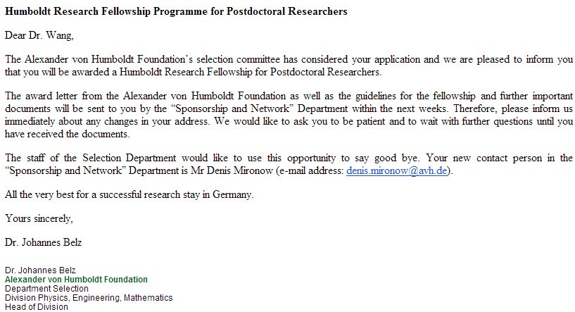 金沙集团官网王冲博士获得2017年“洪堡研究基金”资助