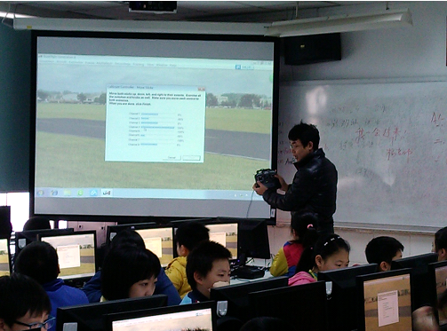 2014年12月23日,星期二上午,SY14054、ZY14052班联合北航金沙集团1862cc航模队同学,完成了北航附小的飞行模拟授课活动。