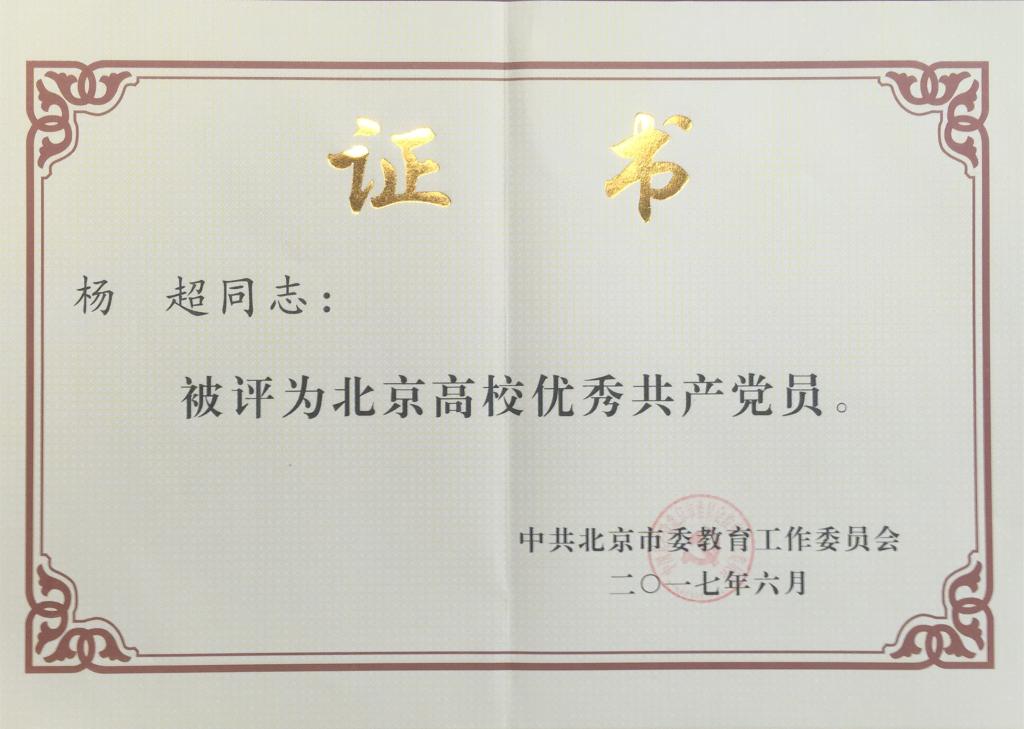 金沙集团官网杨超教授被授予“北京高校优秀共产党员”称号